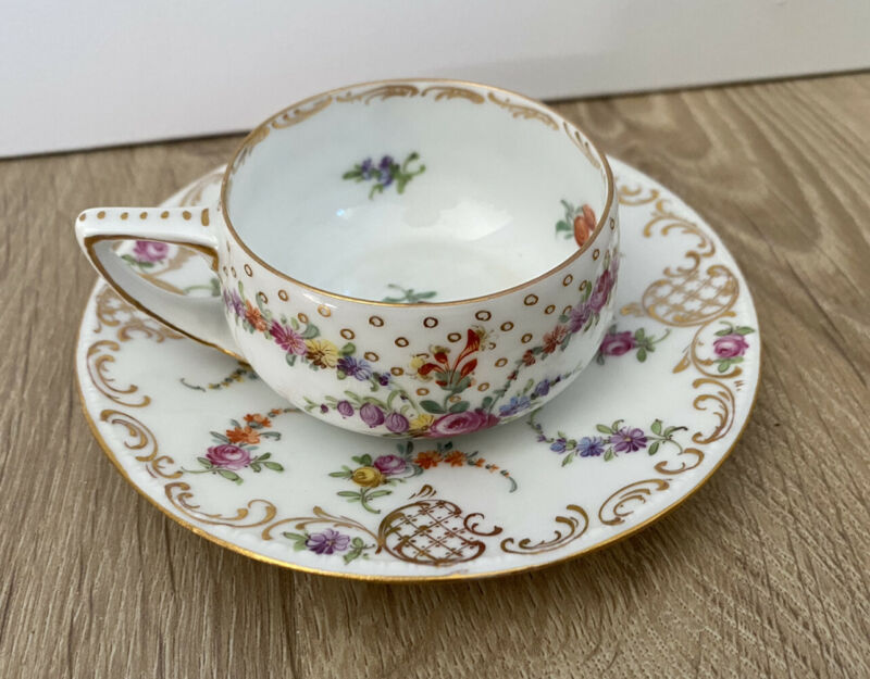 Title (ebay affiliate link): VINTAGE DRESDEN GERMANY PORCELAIN DEMI DEMITASSE TEA CUP & SAUCER FLORAL