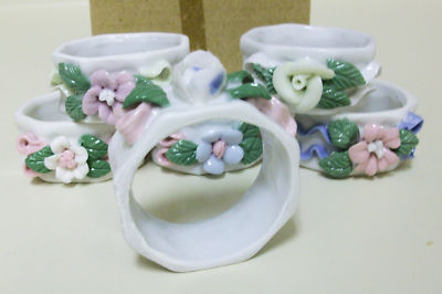 Set of 6 Capodimonte Porcelain Napkin Rings - NIB