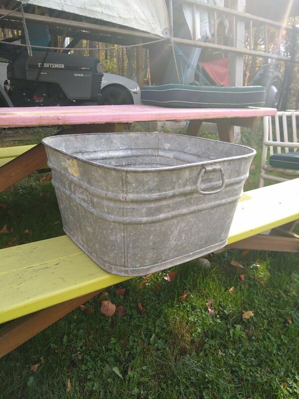 Title (ebay affiliate link): Vintage Galvanized Metal Square Wash Tub Farm Flowers