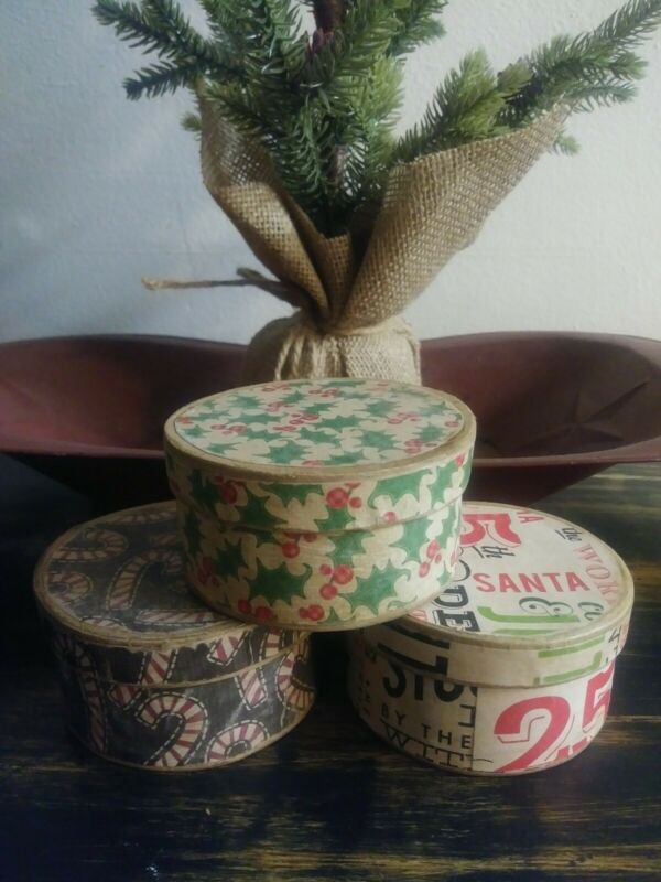 Title (ebay affiliate link): Christmas Paper Mache Treat Boxes. Set Of 3. Handmade