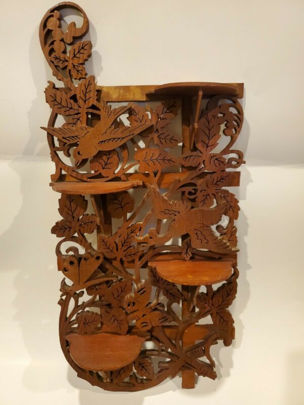 Vintage Birds and Butterflies 4 shelf ornate fretwork wall art