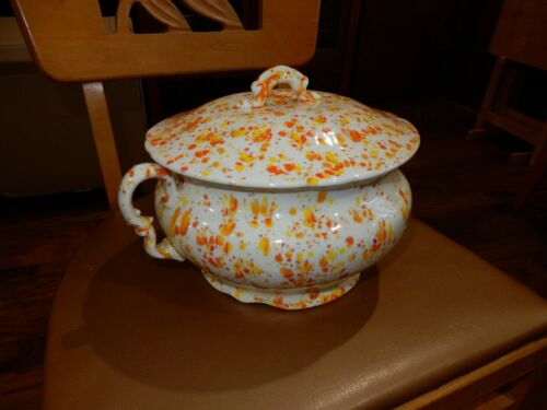 VINTAGE CERAMIC CHAMBER POT WITH LID HANDPAINTED SIGNED ELVA ''78