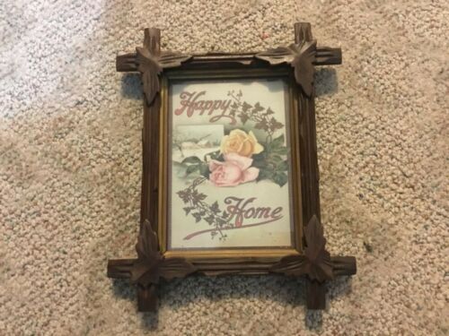 ANTIQUE VTG ADIRONDACK TRAMP ART CARVED WOOD LEAVES FRAME with GLASS 5 x 7