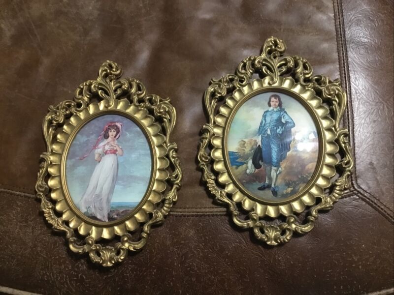 Pinkie And Blue Boy Pictures In Oval Gold Frame