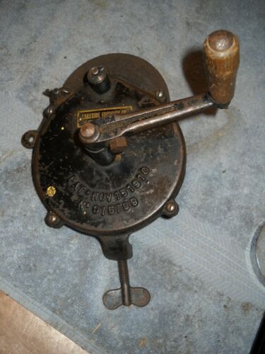 Title (ebay affiliate link): VINTAGE HAND CRANK BENCH GRINDER LAKESIDE FOUNDRY