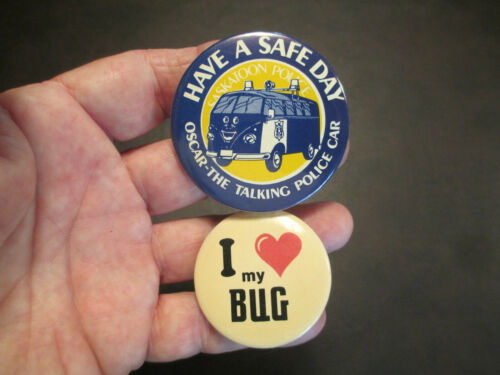 Title (ebay affiliate link): 2 VOLKSWAGEN BUTTON PIN''S '' HAVE A SAFE DAY-I LOVE MY BUG ''