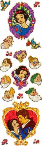 Title (ebay affiliate link): GLITTERY SNOW WHITE STORY ROMANCE SEVEN 7 DWARFS Sandylion Stickers ~1 strip