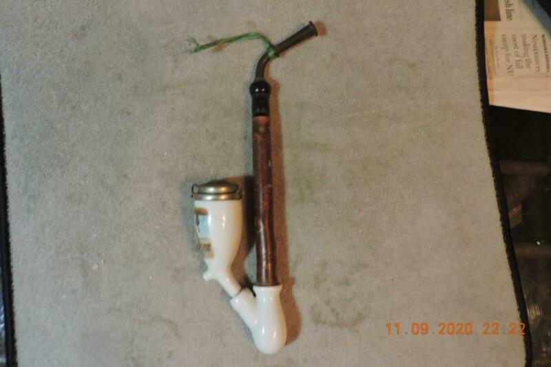 Title (ebay affiliate link): Antique German pipe bowl & wood stem painted Mountain Cabin scene Porcelain pipe