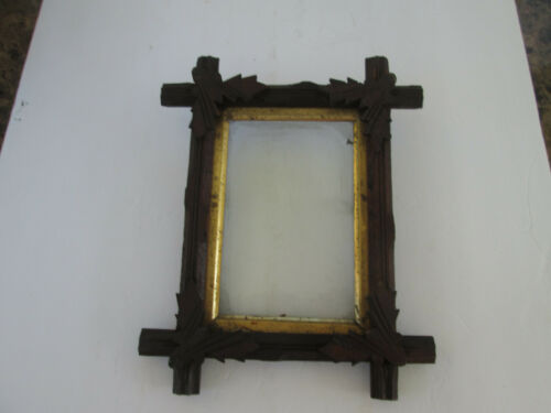 Antique Adirondack Carved Wood Small 5 x 7 Frame Black Forest Leaf 5432
