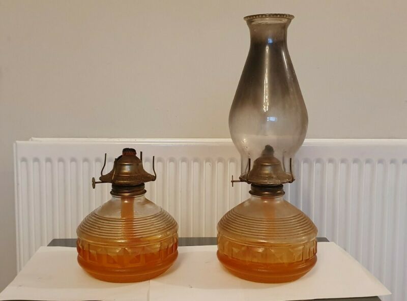 PAIR OF VINTAGE PARAFFIN OIL LAMPS