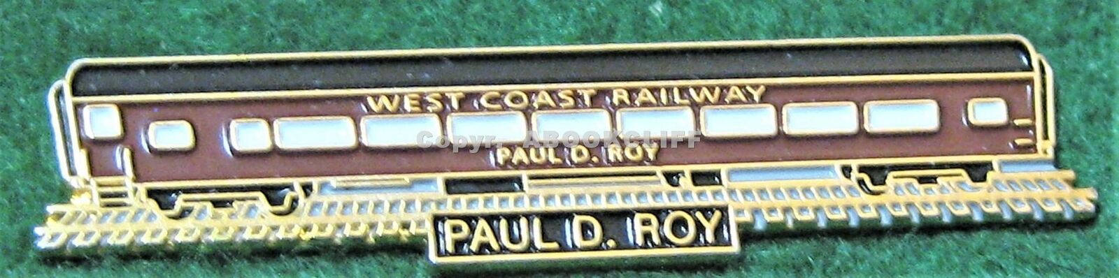 Title (ebay affiliate link): WEST COAST RAILWAY NAMED CAR PAUL D. ROY BRITISH COLUMBIA CANADA Pin