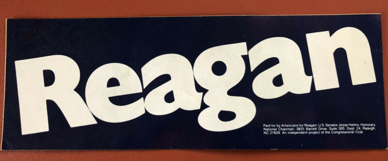 Title (ebay affiliate link): 1980 Ronald Reagan for President original campaign bumper sticker backing intact