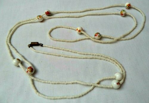 STUNNING ANTIQUE ESTATE 1940''S ART DECO MILK GLASS BEAD 46" NECKLACE!!! G1017