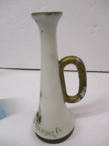 Vintage Milk Glass Souvenir Little Hocking Trumpet with Screw Off Base