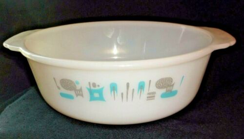 Title (ebay affiliate link): Vintage Fire King Mid Century Modern Atomic Baking Serving Dish Blue Heaven #3
