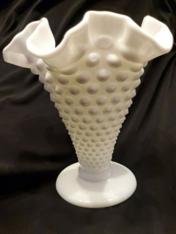 Title (ebay affiliate link): Vintage Fenton VASE -MILKGLASS, Hobnail, Fluted, Ruffled Edge Detail! BEAUTIFUL