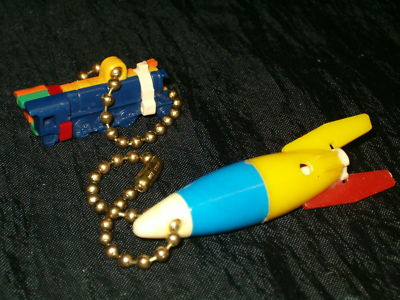 Title (ebay affiliate link): Vintage 1950's TRAIN & ROCKETSHIP KEYCHAIN PUZZLES