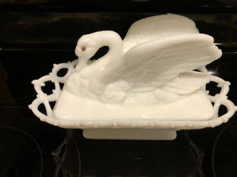 Title (ebay affiliate link): Vintage Covered Milk Glass Swan On Nest Open Lace Basket Great Condition