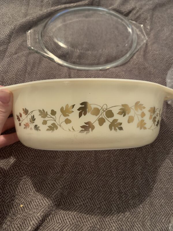 Title (ebay affiliate link): Pyrex 043, 1960 Promo, Golden Acorn 1-1/2 Quart Casserole W/Lid.