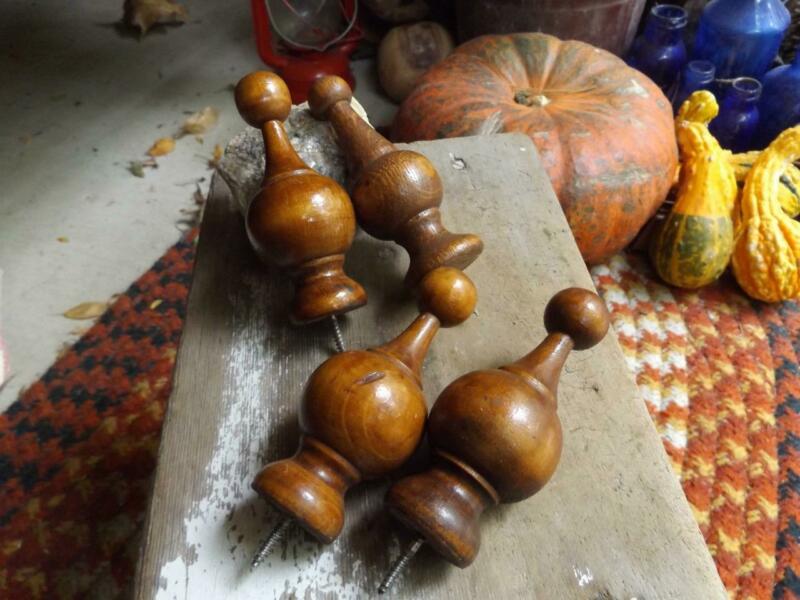4 Lovely Old Vintage or Antique Wood Finials