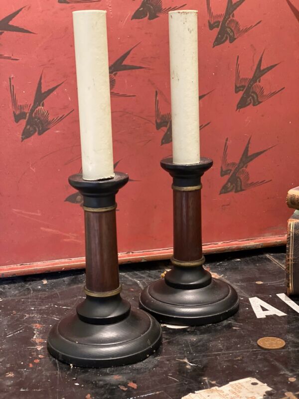 Title (ebay affiliate link): Pair Vintage Table Candle Lamps - Mahogany Column Ebonised Base With Gold Paint