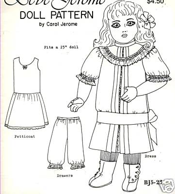 Title (ebay affiliate link): 23"ANTIQUE FRENCH BEBE/JUMEAU DOLL DRESS PATTERN@1880's