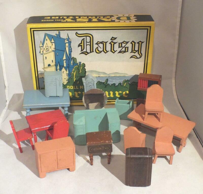 Title (ebay affiliate link): LOT 16 pc VINTAGE WOOD DOLL FURNITURE IN ORIGINAL DAISY BOX
