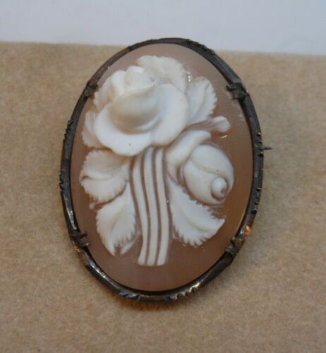 Title (ebay affiliate link): ANTIQUE ART NOUVEAU ART DECO .800 SILVER CAMEO FLOWER BROACH PENDANT HI RELIEF