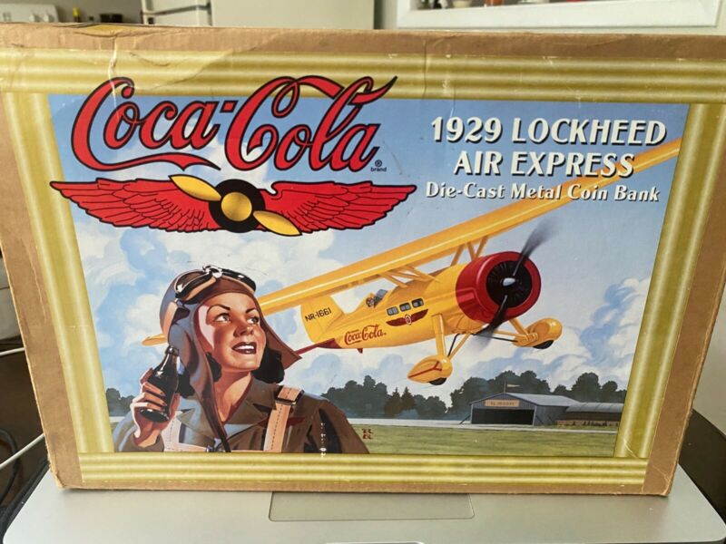 Title (ebay affiliate link): VINTAGE LOOK Coca Cola Classic 1929 Lockheed Plane Coin Box in original Box