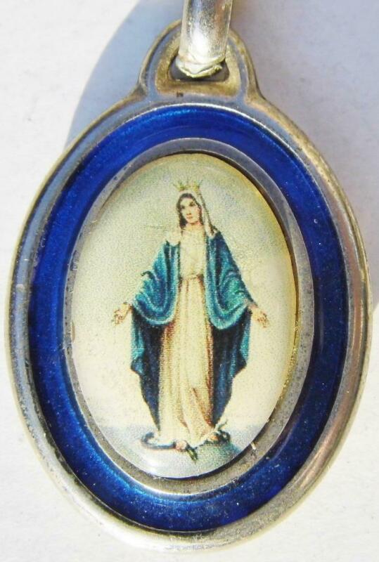 Vintage Enamel & Chrome Miraculous Holy Medal Key Chain Fob 4 Driver Protection