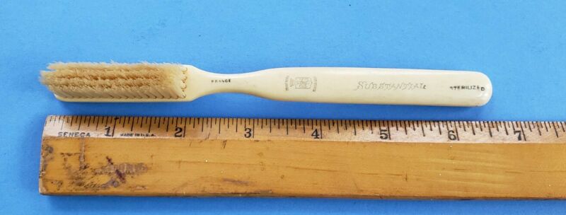 Antique "Substantial" Bone Toothbrush UNUSED! Made in France.