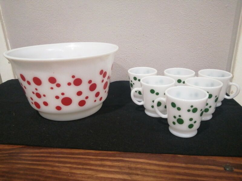 Title (ebay affiliate link): Hazel Atlas Milk Glass with Red Polka Dots Punch Bowl Awesome!