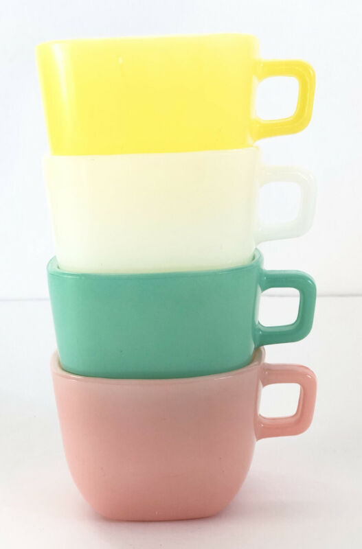 Title (ebay affiliate link): Vintage Glasbake Lipton Square Mugs Lot of 4 Coffee Soup Cups Multi Color 50''s
