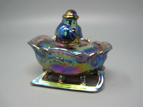 Vintage WESTMORELAND Carnival Glass Covered Candy Dish SANTA Christmas