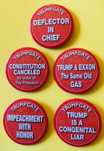 Title (ebay affiliate link): Five 2 1/4" Anti-Trump "Trumpgate" Political Pinback Buttons