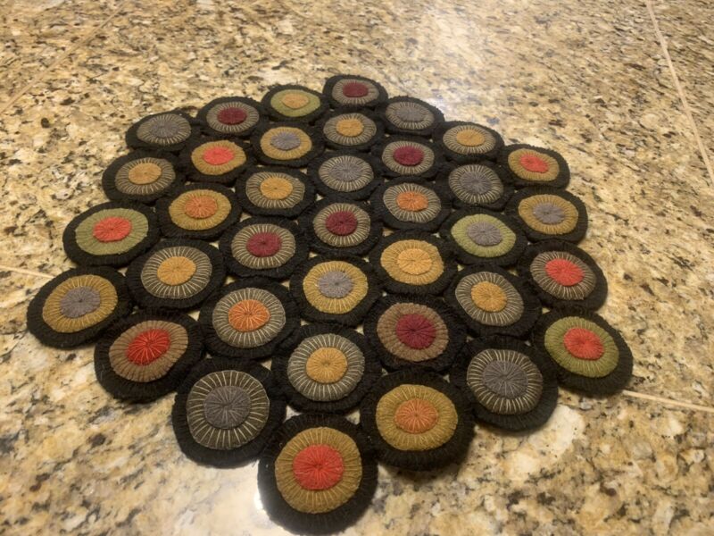 Primitive Colonial Round Penny Rug Table Runner Great Colors!