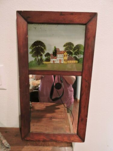 Title (ebay affiliate link): VINTAGE MIRROR REVERSE PAINTED ON GLASS - HOUSE SCENE - WOOD FRAME
