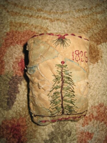 Title (ebay affiliate link): Primitive tiny Sampler Pillow 1825 The Christmas Tree~Early worn quilt~Folk Art