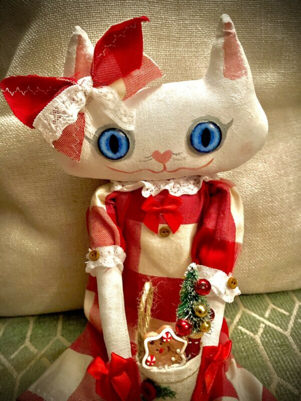 Title (ebay affiliate link): Primitive Christmas Cat Doll Mitten Kittens White Cat Girl