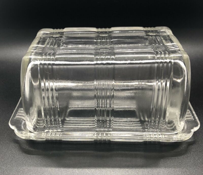 Hazel Atlas Criss Cross Pattern Clear Glass Butter Dish