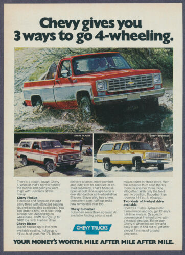 Chevrolet Chevy Pickup Truck Blazer Suburban Vintage Magazine Print Ad 1976