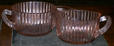 Title (ebay affiliate link): Queen Mary Vertical Ribbed Pink Glass Sugar & Creamer