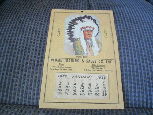 Title (ebay affiliate link): Plume Trading & Sales Co, Inc. Monroe New York 1955 Calendar Sioux Chief