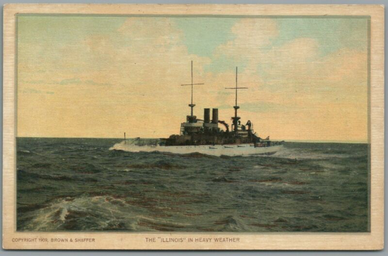 Title (ebay affiliate link): THE "ILLINOIS" IN HEAVY WEATHER - GREAT WHITE FLEET BROWN & SHAFFER POSTCARD