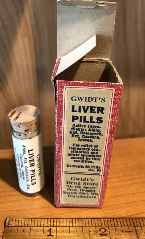 Title (ebay affiliate link): Quack Liver Pills Medicine Bottle & Box Stevens Point Wisconsin