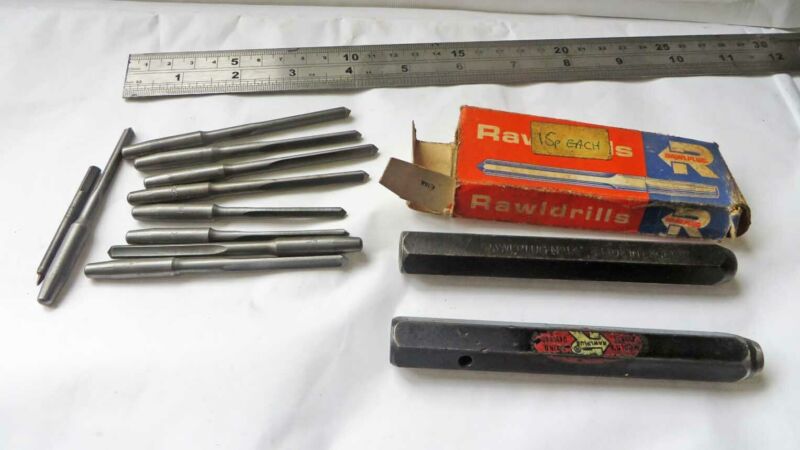 Title (ebay affiliate link): Vintage PAIR Early Manual ''RAWLPLUG'' No:14 Drill Tools c/w UNUSED No:8 & 10 Bits
