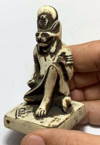Title (ebay affiliate link): BEAUTIFUL ANCIENT EGYPTIAN GLAZED STONE SEATED BASTET CAT STATUE 89mm