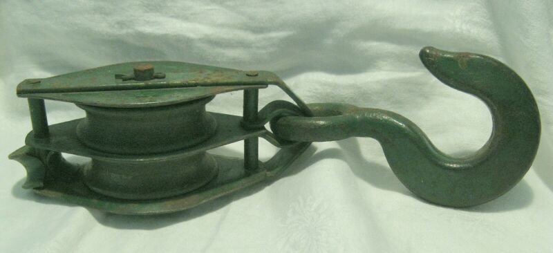 Title (ebay affiliate link): ANTIQUE DOUBLE CHANNEL PULLEY BLOCK AND TACKLE ORIGINAL GREEN PAINT