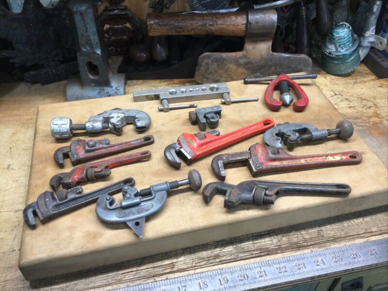Title (ebay affiliate link): 12 Vintage Plumbing Wrenches And Tubing Cutters Ridgid