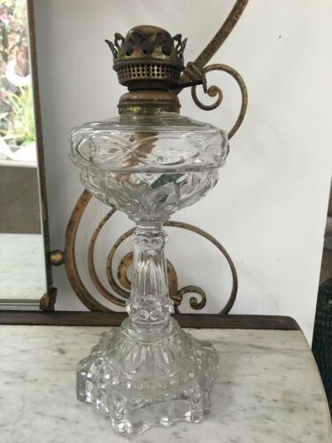 a small antique pressed glass oil lamp